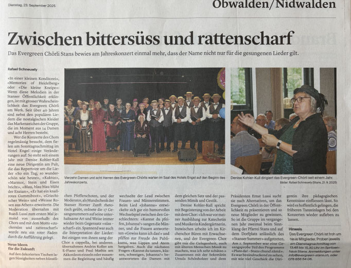Jahreskonzert vom 21.09.2025 Hotel Engel, Stans (Bericht und Fotos: Rafael Schneuwly)